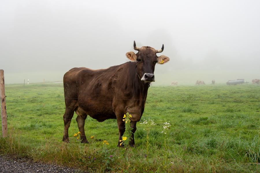 Diese Kühe werden Allgäuer Braunvieh genannt.