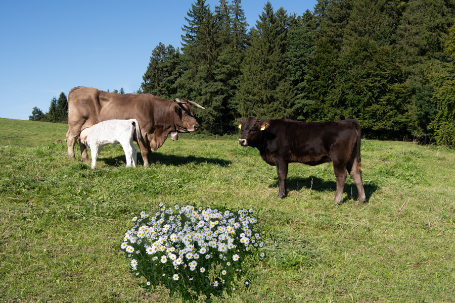 Die Margariten habe ich den Kühen spendiert, der schwarze Schumpen schaut begeistert auf die Blümerl.